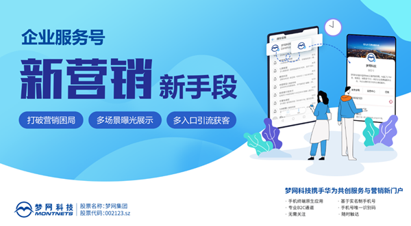 作为基于5G网络、移动终端、聚合全终端厂商的 B2C新型服务及营销的新门户,企业服务号致力于为客户和产业链给予全方位营销服务解决方案。未来,企业服务号平台将持续升级优化,深度挖掘服务场景,打破应用壁垒,与广大企业用户实现更深层次的共建共赢,做最懂用户的营销服务门户。